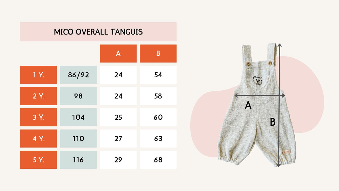 * The Mico overall has an elasticated leg opening for 1-Year-olds and a loose leg opening for bigger sizes. Plus one pocket for any tiny treasures. Cuteness overload!