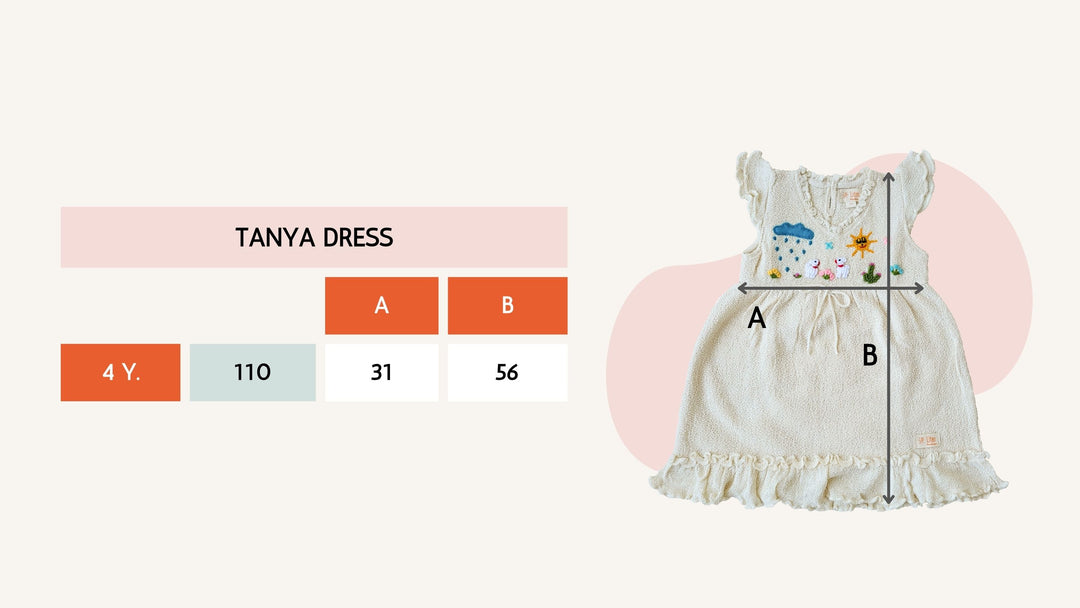 A dream fit for your little girl! Our Tanya Dress has an A-line fit and fun double-layer butterfly sleeves perfect for twirling and dancing. Made of knitted cotton fabric with hand embroidery inspired by nature.