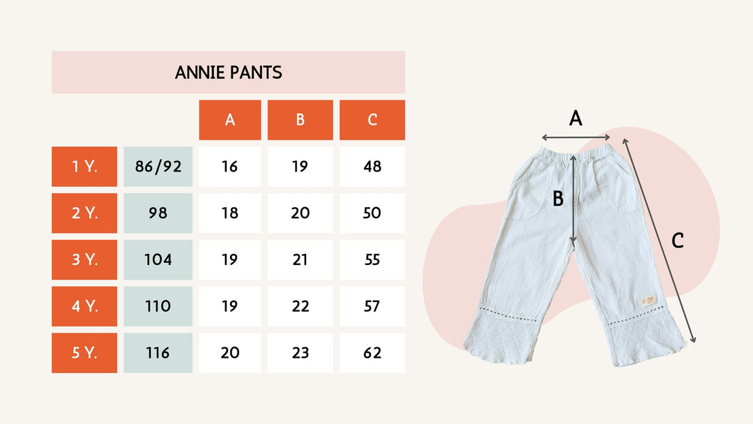 ¡Mantén a tu pequeña cómoda y elegante con nuestros pantalones Annie! Estos pantalones de algodón natural presentan divertidos patrones de punto de algodón en la parte inferior para mayor frescura. ¡Con bolsillos delanteros para guardar esos tesoros especiales! El material suave mantendrá a su pequeño con una sensación sedosa.